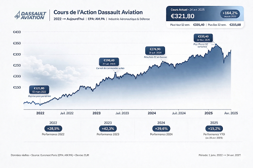 Acheter un actif en dessous de sa valeur de marché est un principe fondamental de l’investissement intelligent. Cette offre permet d’entrer sur Dassault à un prix potentiellement plus avantageux que celui disponible sur les marchés et s’adresse aux investisseurs souhaitant faire travailler leur épargne, construire un patrimoine progressivement et investir sur le long terme. L’offre vise un équilibre entre sécurité et potentiel de croissance grâce à la diversification des activités de Dassault dans l’aviation de défense, l’aviation d’affaires et les technologies aéronautiques avancées.